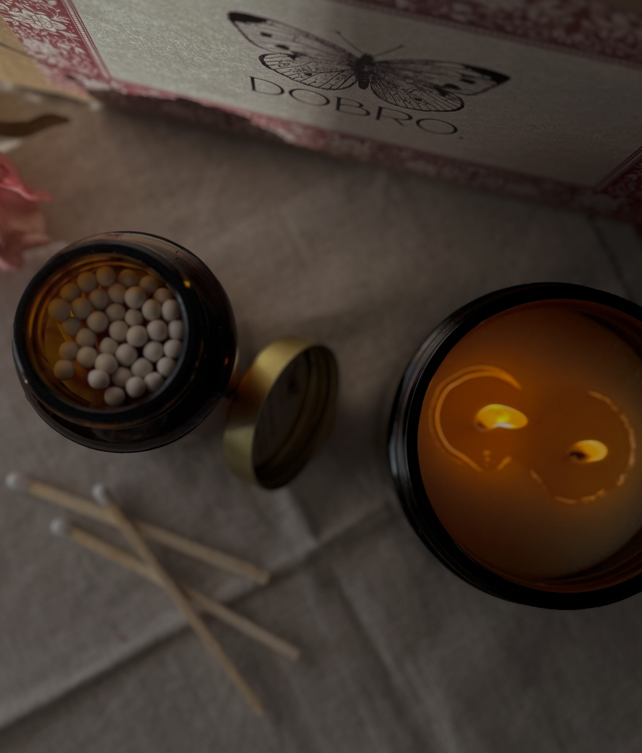 Szklana buteleczka z zapałkami